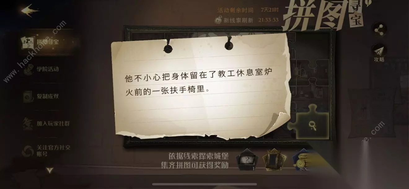 具体地点在【魔法史教室】讲台左侧,到达后在下图所示位置找到黄色操作光点,交互即可获得今天第三块拼图!