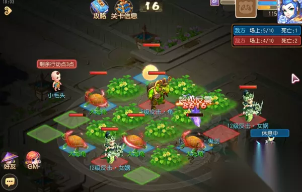 梦幻西游手游游乐对弈第十关攻略 1、第10关我方棋子全部为大海龟,因此在特殊棋子选择上,游戏宝小编建议大家选择不同特性的泡泡。 2、本关卡3星的条件有一条是己方存活数量≥2,作为以自爆为特色的关卡,如何做到以1换多呢?通关秘籍就在我们的泡泡棋子上。 3、由于泡泡棋子的十字爆炸,因此在操作时,尽量让泡泡棋子炸出“1换2”或“1换3”的效果。 4、除此之外,我们也可以利用大海龟前20回合拥有10000额外气血的特性,让大海龟在前期频繁靠近非律法单位,利用超级反震达成多次击杀,进而保证我方胜利时拥有更多的棋子。