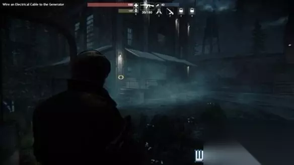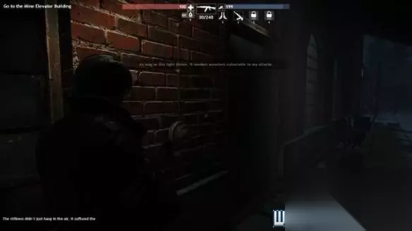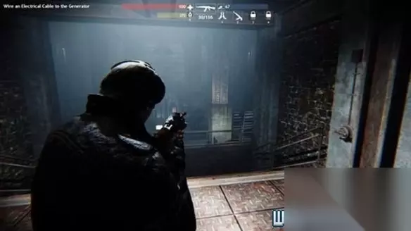 进入工厂后,可以看到这个有边框的物品,靠近之后在旁边很容易就能找到灯的开关。 打开灯以后拿到线圈,赶紧出去