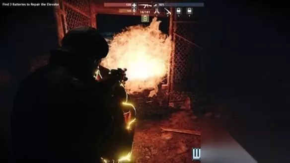 电梯里面并没有战斗,等电梯门打开以后看到怪物了直接用火烧。 烧光了再出去,现在要去收集3个电池。