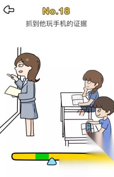 《脑洞大师》手速大师第18关攻略,等你来挑战! 题目:抓到他玩手机的证据 答案:看进度条在点击屏幕,不能通过,就多试几次