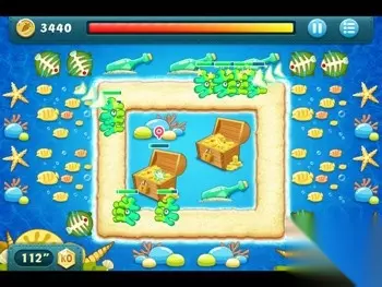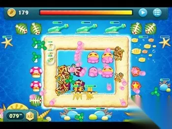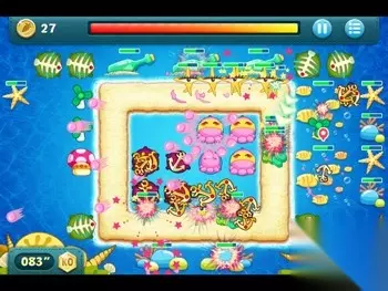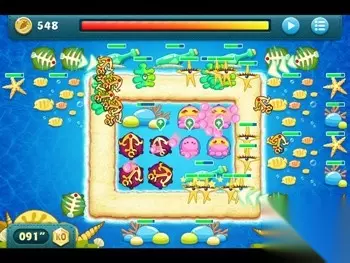 宝箱打掉后会出现四个章鱼宝宝,同样将靠外侧的三个升至顶级,接着就是要瞄准图上标记的位置,里面是一颗炸弹。 接着把左上方俩个鱼骨下面的鱼群打爆,会得到四个风扇,卖掉外侧的两个风扇,并在下图标记的位置放下一个蘑菇。