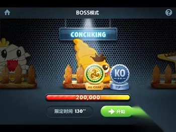 深海攻略 BOSS模式第13关: 名称:CONCHKING 血量:200000生命点 时间:130秒