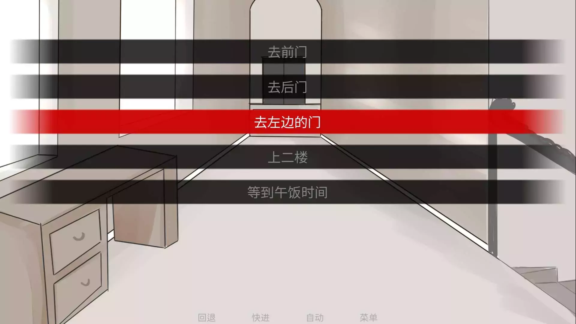 ★调查门,选择“上二楼”再选择“去左边的门”再选择“用钥匙”打开门