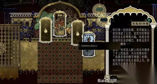 给予致命一击 火龙就会呃啊一声被你杀死。但是根据火龙的说法,杀死火龙并不能解除阿迪莱家族的诅咒,火龙也并不会真正死亡而是转生。But who cares?你依然能被龙血沐浴,被万民赞颂,获得战利品。 选择完成后,次回合弹出事件“致命一击”,屠龙四人自动进入事件锁死,持续1回合。注意当前回合苏丹卡仍在起效。 回合间隙,屠龙完成,四人组体魄+3,获得道具“火龙头颅”。 次回合,苏丹卡失效,所有事件消失,弹出事件“龙头的归属”。这里可以选择将龙头献给苏丹,或是留给自己。 注意!!如果将龙头献给苏丹,游戏将失败。