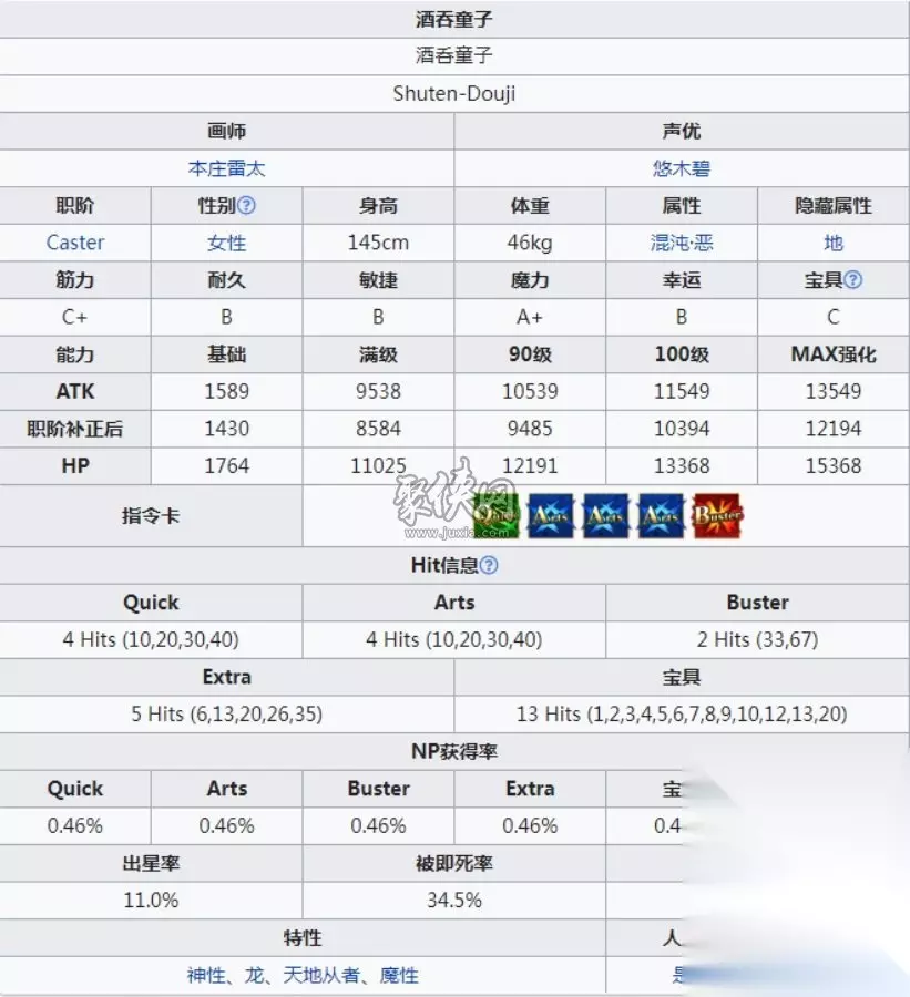 Fgo术阶酒吞童子技能宝具图鉴及强度测评 点击进入相关资讯 从者基本信息