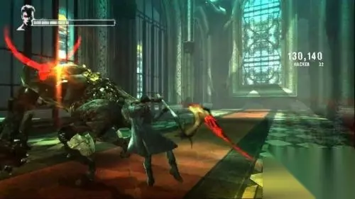 如果操作熟练,电锯恶魔可以通过连击直接消耗死,手残的同学请在恶魔发光时躲闪攻击。 4.监视之下 但丁正与KAT前往目的地,不料被监视器发现,拉入平行世界。 1.继续承接试玩版的场景,小怪数量和收集物品都与试玩版相同。 2.本关难度不大,主要是加强2种锁链切换的熟练度。 3.注意:冰属性的盾牌恶魔,必须按住LT使用镰刀进行攻击,其他攻击都是无效的。他的冰刃攻击可以预判躲闪,如被击中将会被控制住2秒。 4.空中的小恶魔第一时间消灭,无论是拿枪、拿盾、还是扔炸弹的,很容易被打出硬直。 5.在教堂的尽头会出现恶魔——Tyrant。 击杀方法:正面状态免疫一切攻击,躲开他的冲撞后,绕道其背后通过2种锁链切换攻击,打出硬直,反复2次即可。
