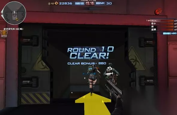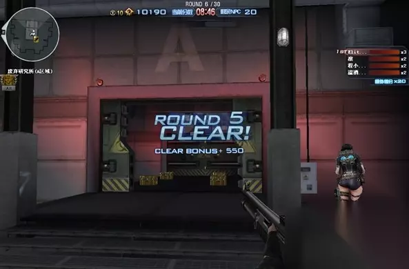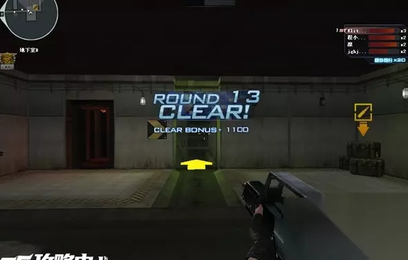 第一关,前方会有四个冲锋枪和两把xm1014可以拾取,建议至少有一个人拿xm1014以确保输出。剩下的四把冲锋枪是什么就要看运气了,uzi尽量不要用,mp5是最佳选择。 前几关我们的任务就是守住这个小房间,现在房间里有一个加子弹的地方和五个门,这几关的要点就是尽量不要让生化幽灵把门攻破。