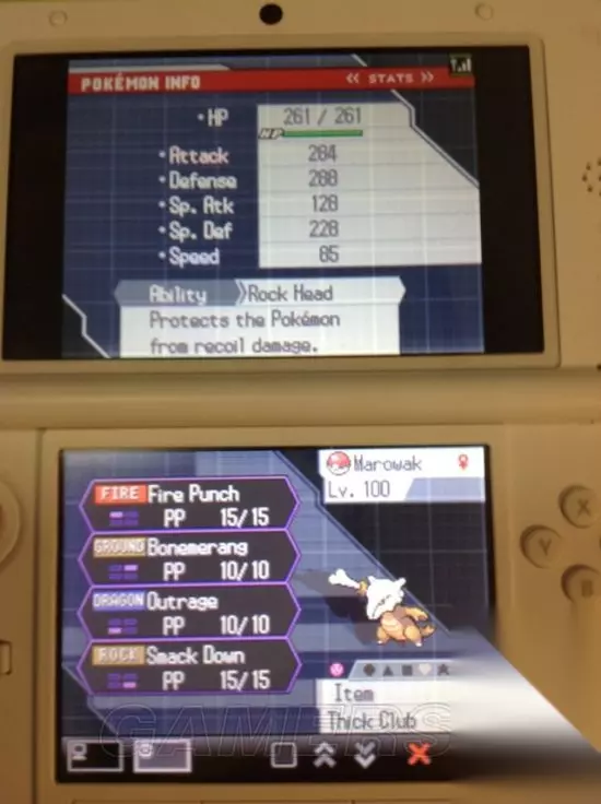 284*2=568,已经超过了攻代,当然,如果代欧奇西斯携带专眼或SM玉也比不上 优点:双防能看,而且有剩余努力可分配;容易让对手轻敌(什么?对手种族只有425?);只要求4V即可(空间攻击手的好处),比较好孵。 缺点:空间一过就几乎丧失了战斗能力,经常被水压啥的强杀;怕戏法 配招:火焰拳+击坠+骨头回旋镖+逆鳞/舍身撞(石脑限定) 252WG 128WF 128TF 携带:粗骨头 击坠是为了给对手制造弱点,再接上强势的回旋镖,若不习惯可换岩崩/石刃回旋镖不可换地震,两次攻击破气腰/坚硬/替身,不要担心那差10的命中 战槌龙 其实专头战槌龙才是攻击力最高的(471*1.5≈706),但是由于专头不够灵活而且战槌龙自身皮脆,感觉用起来不如嘎拉嘎拉。 优点:物攻极高,在空间中是灭队的存在;梦特性实用(虽然LZ不知道怎么获得) 缺点:皮脆,携带专爱后不够灵活
