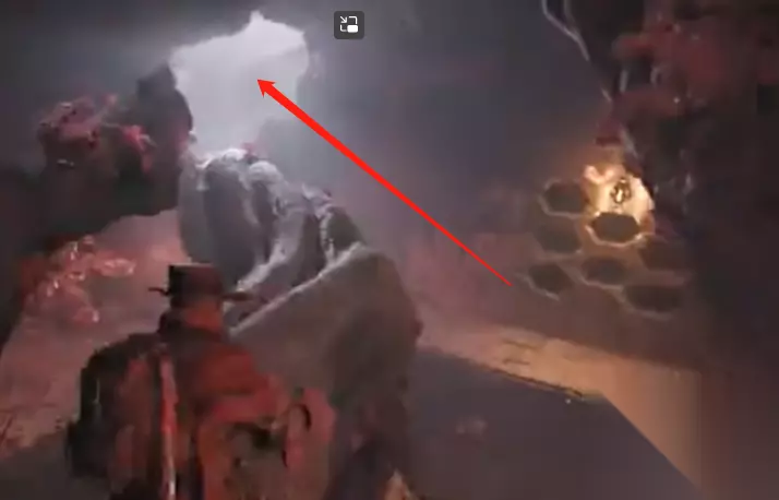 3、沿路向有光的洞口走,并穿过它,然后去有树根的走道。