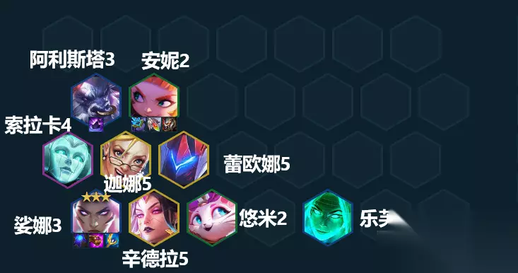 9.爱心安妮阵容组成:【安妮、妖姬、索拉卡、风女、猫咪、努努、璐璐、牛头、琴女】。