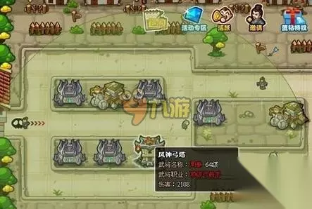 剩下左边的军师,左上角的可以打酱油,因为上排有炮在,所以不怎么缺攻击力,而下排一定要有攻击有速度,甚至有范围,当然,因为放了3水毒,所以范围也不大就是,但一定要下排2塔都能打到中间转角,这样才有攻击。