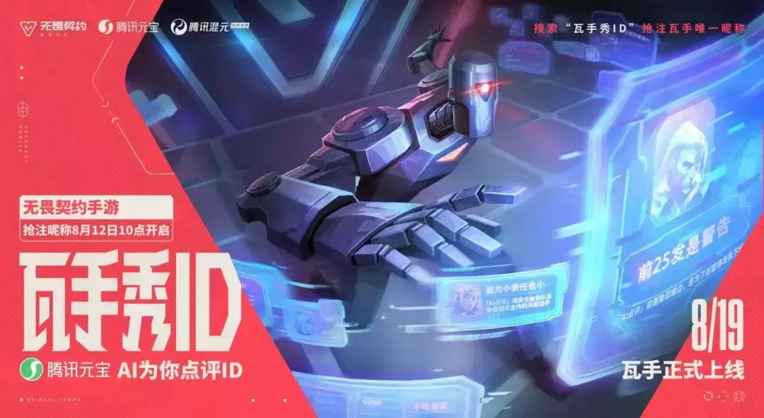 8月12日10:00,「瓦手秀ID」活动抢注昵称活动开启!这是抢注你在瓦手【唯一昵称】的机会,手快有,手慢无!