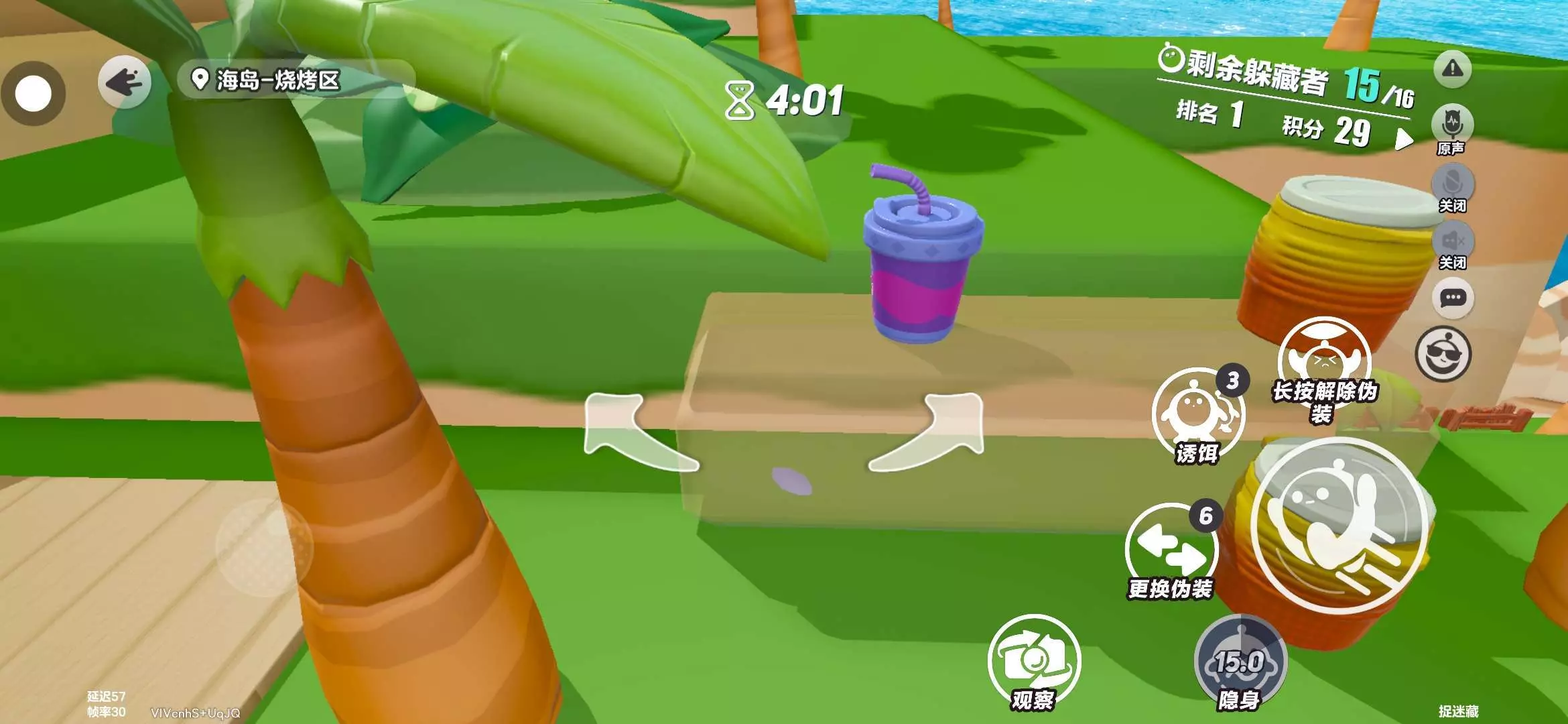 玩捉迷藏,变成贝壳站在桌子上,那一个玩家直接给我踩了一脚,踩进了桌子里面😫意外进了无敌点,嘻嘻~