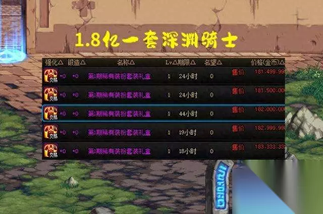 然而事实是,国服第1套稀有天空深渊骑士,售价仅仅1.8亿金币! 讲道理地说,第一眼看到这个价格的时候我还有点懵,以为这只是1件的价格,没想到是一整套8件的价格! 2个月前8亿金币,2个月后1.8亿金币,仅仅过了2个月,就降价了超过6亿金币,这已经不能用背刺来形容了,这分明就是妥妥的“冤大头”啊!
