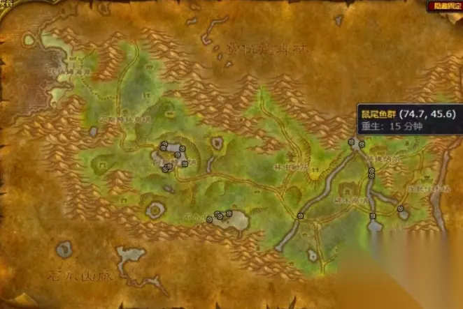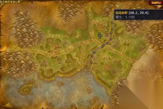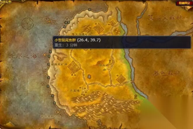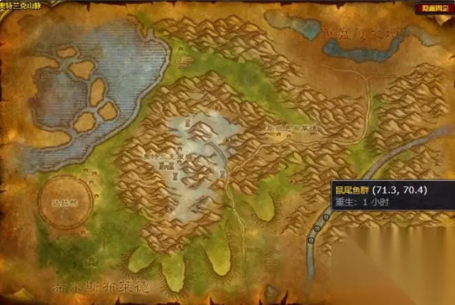 钓点坐标位置一览: 1、鼠尾鱼群:灰谷、希尔斯布莱德丘陵、奥特兰克山脉、石爪山脉 灰谷: