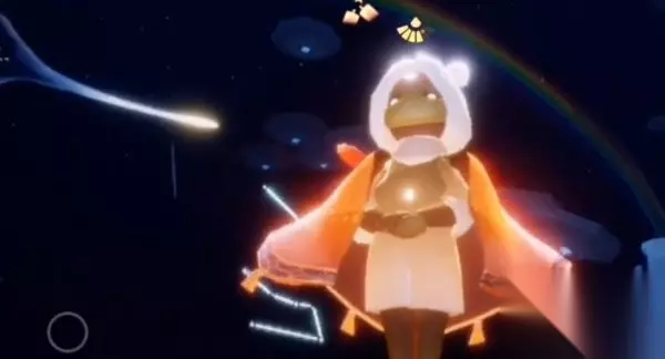3、最后往彩虹的右边飞行,大蜡烛堆就在彩虹的右边的落脚点,过去即可看到。