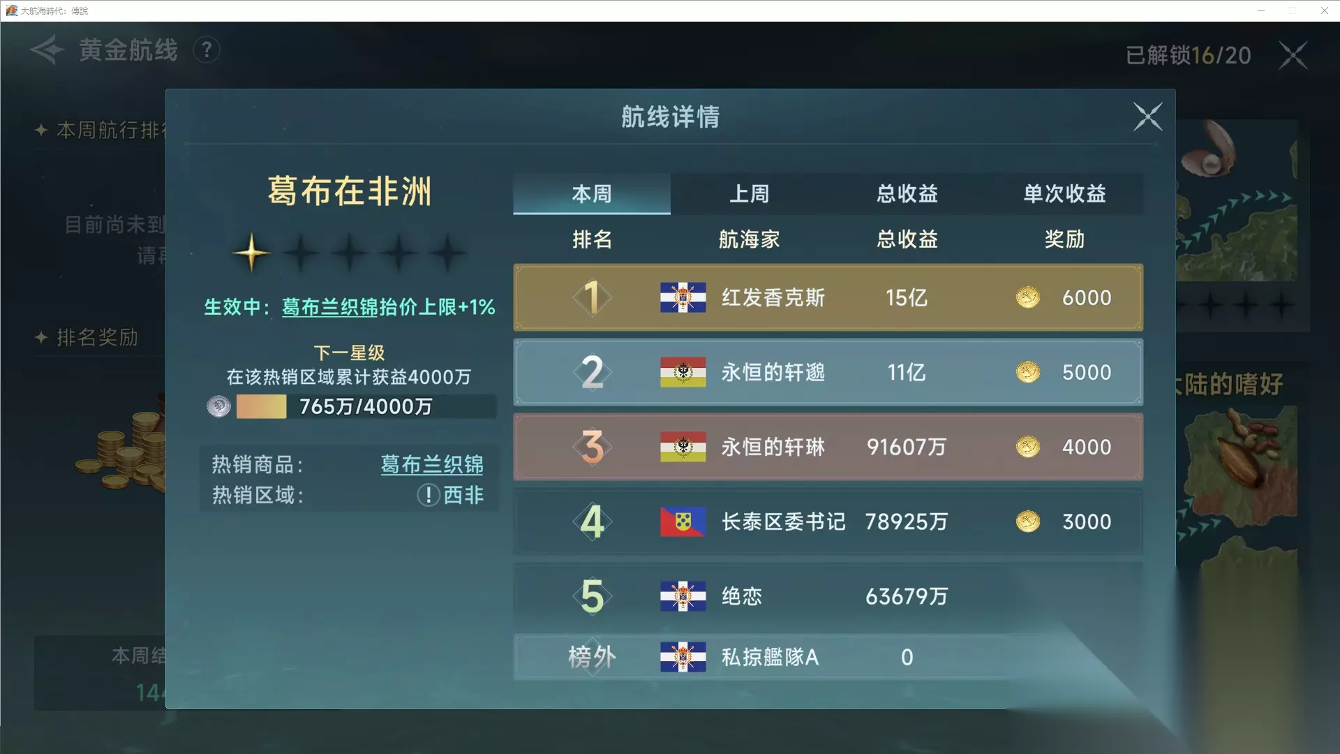 (3) 纺织流西非开始,如果加莱发展度足够的话,是可以选择葛布去非洲的,同样是纺织品,虽然利润和大马士革布接近,不过就当是完成黄金航线了,比较麻烦的是这条路没有回程商品,所以能做几步黄金航线就做几步,接着可以回去继续老玩法。
