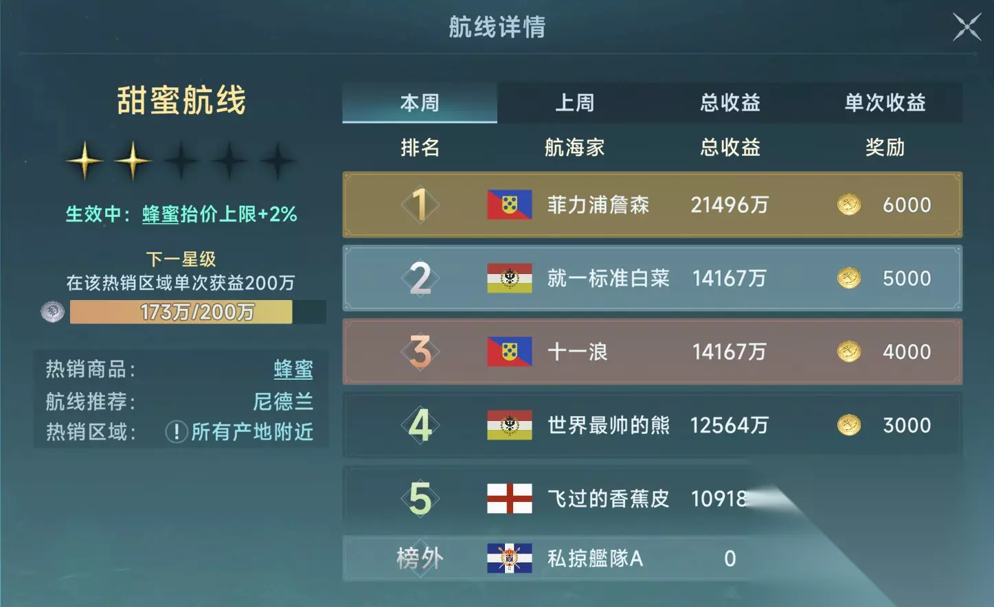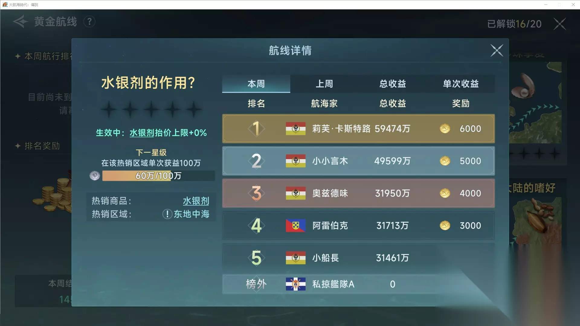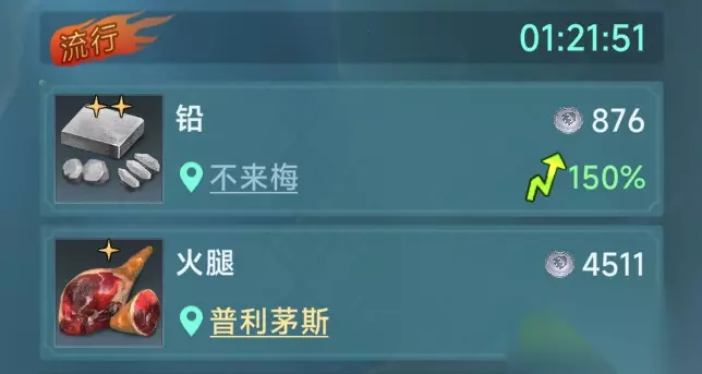 回程可以选择水银剂,顺路的黄金航线,加上不冲突的星书,算是不错的回程商品。