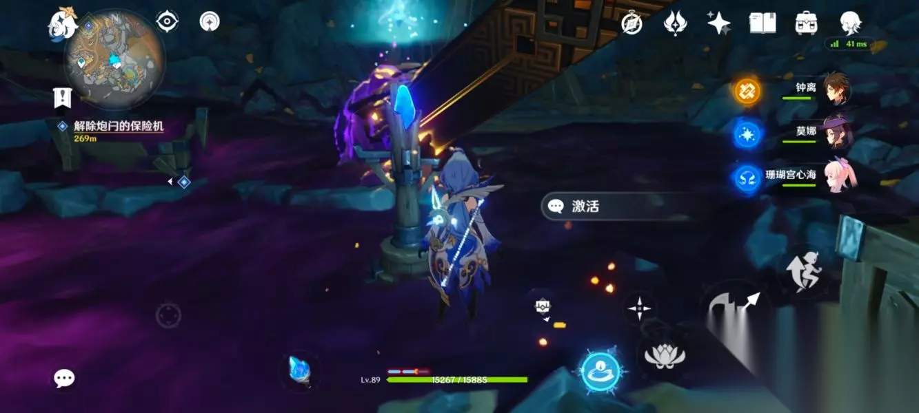然后我们要在不踩到这个黑泥的地方使用流明石触媒清掉黑泥,才能对机关进行充能,有一个机关的黑泥离的比较远