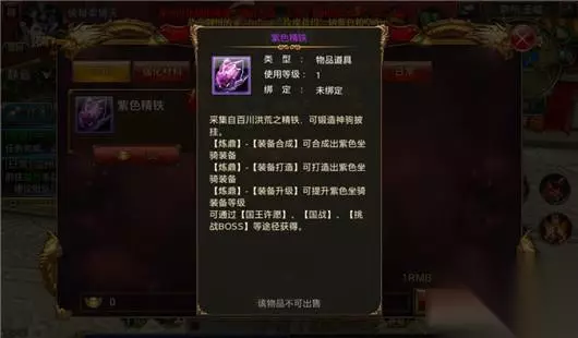 [坐骑传承] 随着玩家角色等级的提升,也会不断的获得更高等级的马匹。这样在替换更高等级的马匹的时候,就需要将原来马匹的炼化属性和马匹技能传承到新马匹上。不同马匹之间之间可100%无损传承加成的属性值,不同马匹传承技能有概率丢失,可以锁定一些技能来保证传承100%成功。 [坐骑装备] 马匹可以携带5件装备和一件时装。马匹的装备同角色装备一样,也可以进行品质合成、升星淬炼、装备打造等操作。马匹装备打造、合成和升级需要用到的道具是紫色精铁,获得途径是国王许愿、国战、挑战BOSS以及在花费100元宝在商城购买。