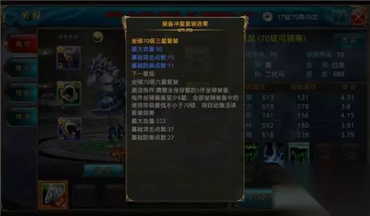坐骑三星套装和六星套装的套装效果属性加成也是比较多的,想要在战力上藐视群雄的土豪玩家,可以在商城热销商品中花费400元宝购买马装中粹神圣礼包、花费1000元宝购买马装高粹神圣礼包,目前是8折优惠。