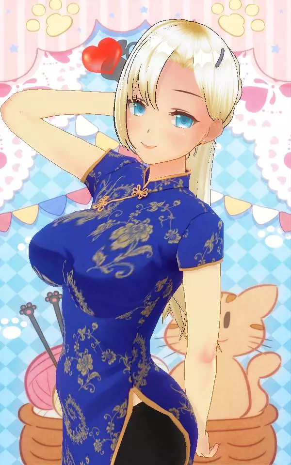 紫色的旗袍实在是找不着,所以成了个蓝色的。