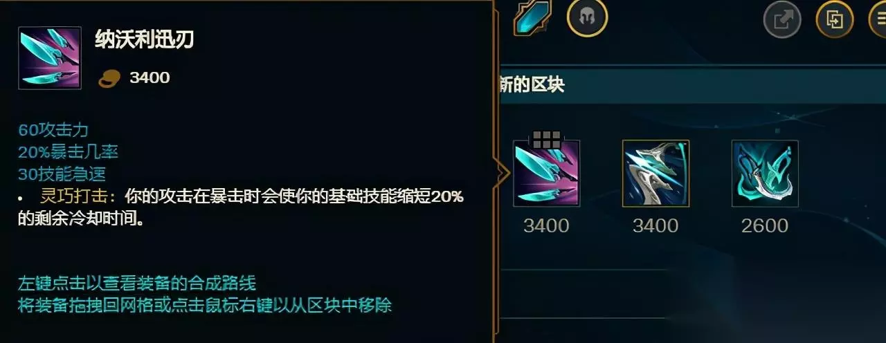 这件装备的基础属性中,6AD+20暴击+30CD这些属性,本来就是大嘴这个ADC英雄非常需要的,所以从基础属性来看这件装备就非常适合所有的ADC英雄使用!另外最重要的就是这件装备的被动效果——【灵巧打击】: 在普攻触发暴击的时候,会使所有的基础技能(QWE三个技能)缩短20%的剩余冷却时间,也就是说使用这件装备以后,只要触发5-6次普攻暴击,就能够重置一个刚刚使用过的基础技能!对于大嘴来说这当然就是最适合的了,W技能开启之后A,A几下触发几下暴击之后,W技能又CD完毕了,效果结束以后可以再次开启!