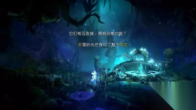 拿到楔石后,回头继续向右走,你会发现一个精灵之井,可以拿来回血、存档、传送。