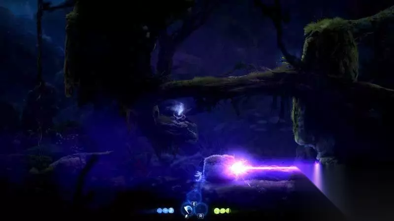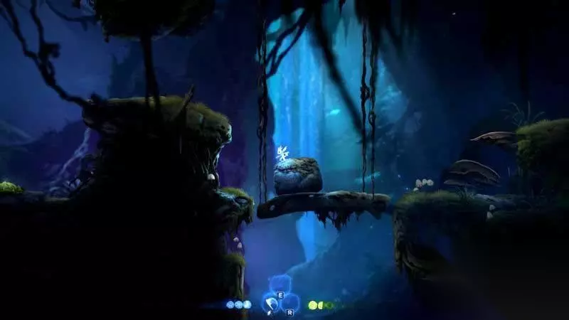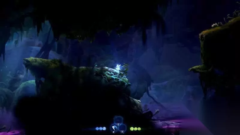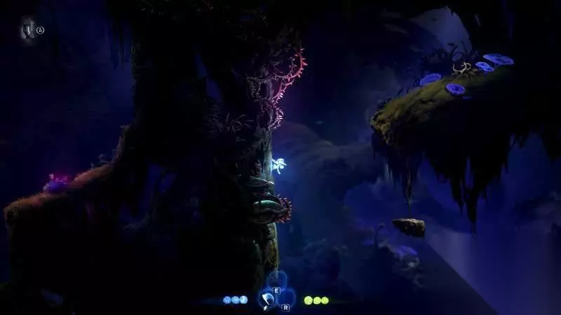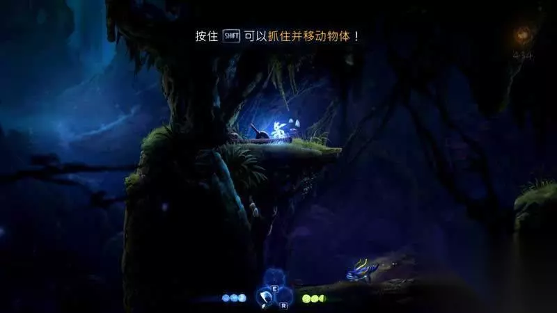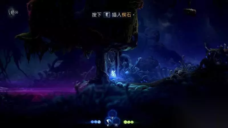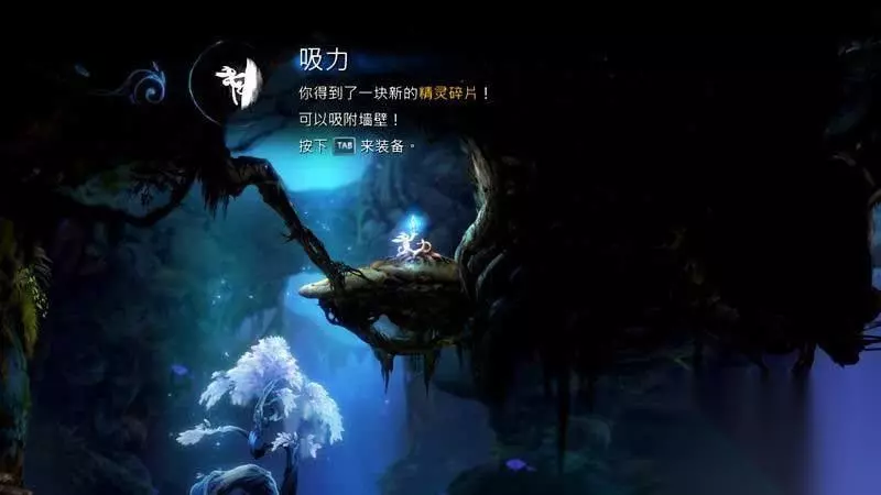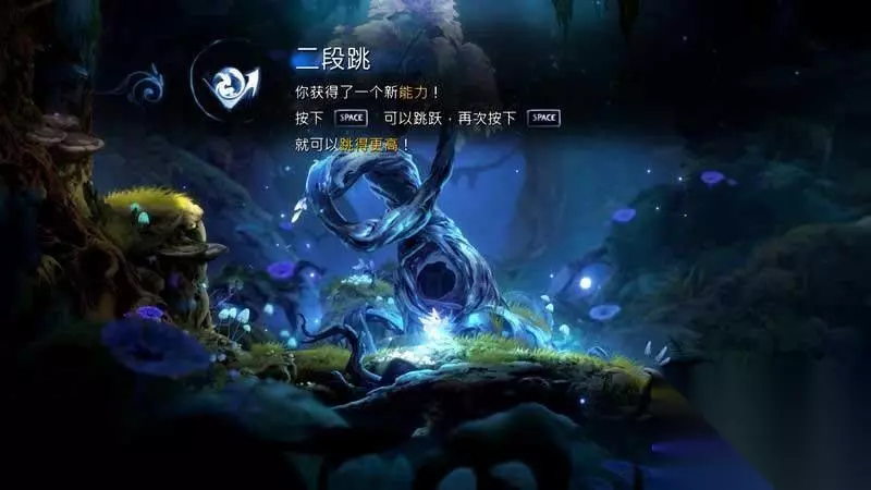 上到左边后一路走到尽头,你会发现一颗新的精灵树,与其互动可以获得二段跳。