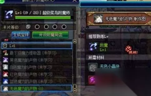 附魔,虽然冷门,但是可以互补,低级的时候可以为人偶和附魔提供材料,减去黑心商人的售价,附魔慢慢练级,也是可以赚钱的。不过练级艰难,不推荐,只是我为了省点钱互补一下炼金和人偶才练的,这就是我为什么说要四个角色四种副职业的原因,而且主号最好是分解师哟。 副职业这个东西,其实我当初还是个新手的时候,也不太懂这个。但是深入了解之后,发现如果你真的是想练一个小号或者你是新人的话,副职业将会是你养成大号最有利的方式。所以还不懂的勇士们可以多看看哦。