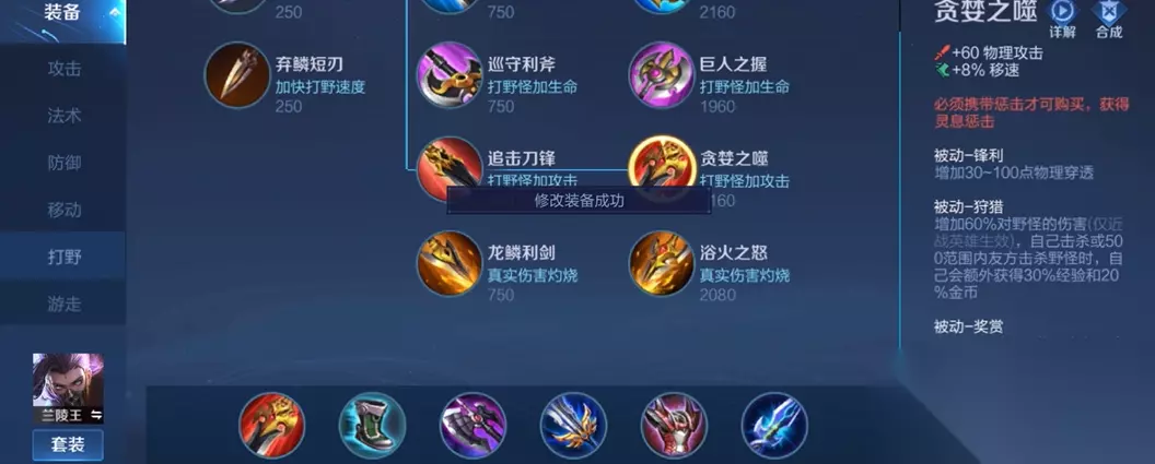 一套较为通用且强力的方案以打野路线为主。开局优先选择追击刀锋或巡守利斧,以提升清野效率并叠加攻击力或生命值。鞋子方面,抵抗之靴是大部分情况下的首选,其提供的韧性可以减少被控制的时间,对于需要进场输出的兰陵王至关重要;若追求极致游走,也可考虑疾步之靴。核心输出装备通常由暗影战斧和破军构成,暗影战斧提供全面的攻击、冷却缩减、生命值及物理穿透,是其技能伤害的基石;破军则大幅提升攻击力,并对残血目标造成额外伤害,完美契合兰陵王的收割定位。后续装备需根据战局灵活调整,名刀·司命和贤者的庇护是提高容错率的关键保命装,而碎星锤则用于应对敌方高护甲的前排英雄。