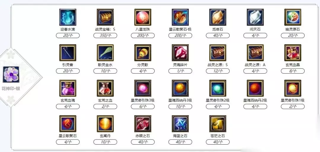 【花神·换好礼】 兑换时间:即日起 - 2023年3月21日24:00 完成上述活动后可获得花神印·银和花神印·金。在祖龙城南“花神使者(577,620)”处消耗不同数量的花神印,即可兑换不同的奖励。下方数字为兑换每种奖励时需要消耗的花神印的个数。