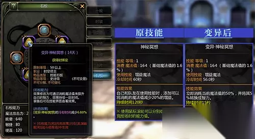 图3(技能石板举例) 颠覆技能性质!技能石板全新上线! 与龙渊幽薮新地图同步推出的全新内容,还有《龙之谷》怀旧服冒险家们关注已久的技能石板。在时空庭院门口的龙渊监视者奥莉薇娅兑换商店中,冒险家们可在「增幅石板」和「变异石板」标签内选择本职业专属的技能石板,每个10银币,限时使用14天,到期消失后可再次购买,最多可同时装备4块能力不同的石板。装备技能石板后,石板技能将会顶替原生技能并继承原技能的等级、纹章、专精及EX效果。每个技能石板还拥有1个共鸣效果,共鸣效果可由技能石板两旁的属性石板来提升!要提醒大家的是,技能石板仅在龙渊幽薮和战斗修炼场中生效哦!