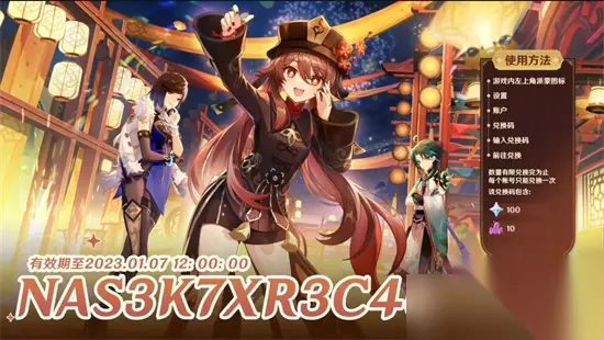 兑换时间:1月7日中午十二点之前 1、直播兑换码,需要在直播结束的15小时内进行兑换。 2、超过时间之后,就会失效,玩家就无法进行兑换。 yuanshenxinchun2023 兑换码输入位置: 1、进入游戏之后,玩家可以点击左上角的头像。 2、在点击左边的设置后,进入设置页面。 3、在设置页面中点击账户,然后点击兑换码后的【前往兑换】。 4、最后在兑换码的输入框中,输入上述的兑换码即可领取奖励。 相关文章:3.4前瞻直播兑换码有效期介绍