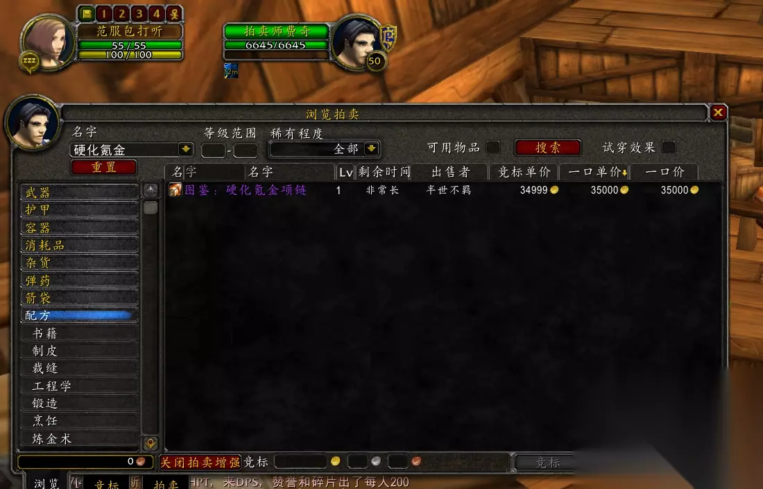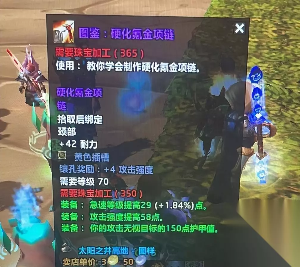 除了阳炎之袍外项链也不便宜,范瑞克斯这一件硬化氪金项链图纸挂了3.5万金。
