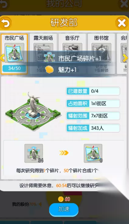 第三、公共建筑的任务不建议做,因为前期消除CD很费金币。所以先提升公司收入提升公司等级(限于首冲屌丝,土豪玩家随意)。