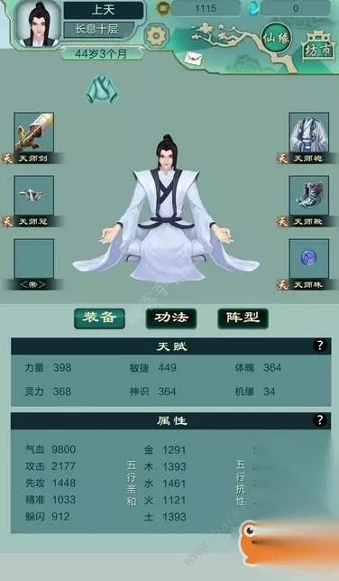 选的暴力输出路线太灵+天柱+一字 因为是走物理输出没刻意去刷五行亲和 属性在上图可以参考一下。