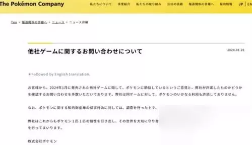 宝可梦起诉幻兽帕鲁成功了吗 2024年1月25日,宝可梦公司官网发布声明称,我们收到了许多客户关于另一家公司于2024年1月发布的游戏的询问,称该游戏与《宝可梦》相似。