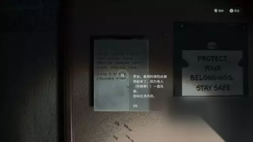 2、在地下室沿着这里唯一的一条道路往里走,找到保险箱,寻找附近的保险丝。 3、装有保险丝的箱子有把密码锁,密码位于洗衣间。