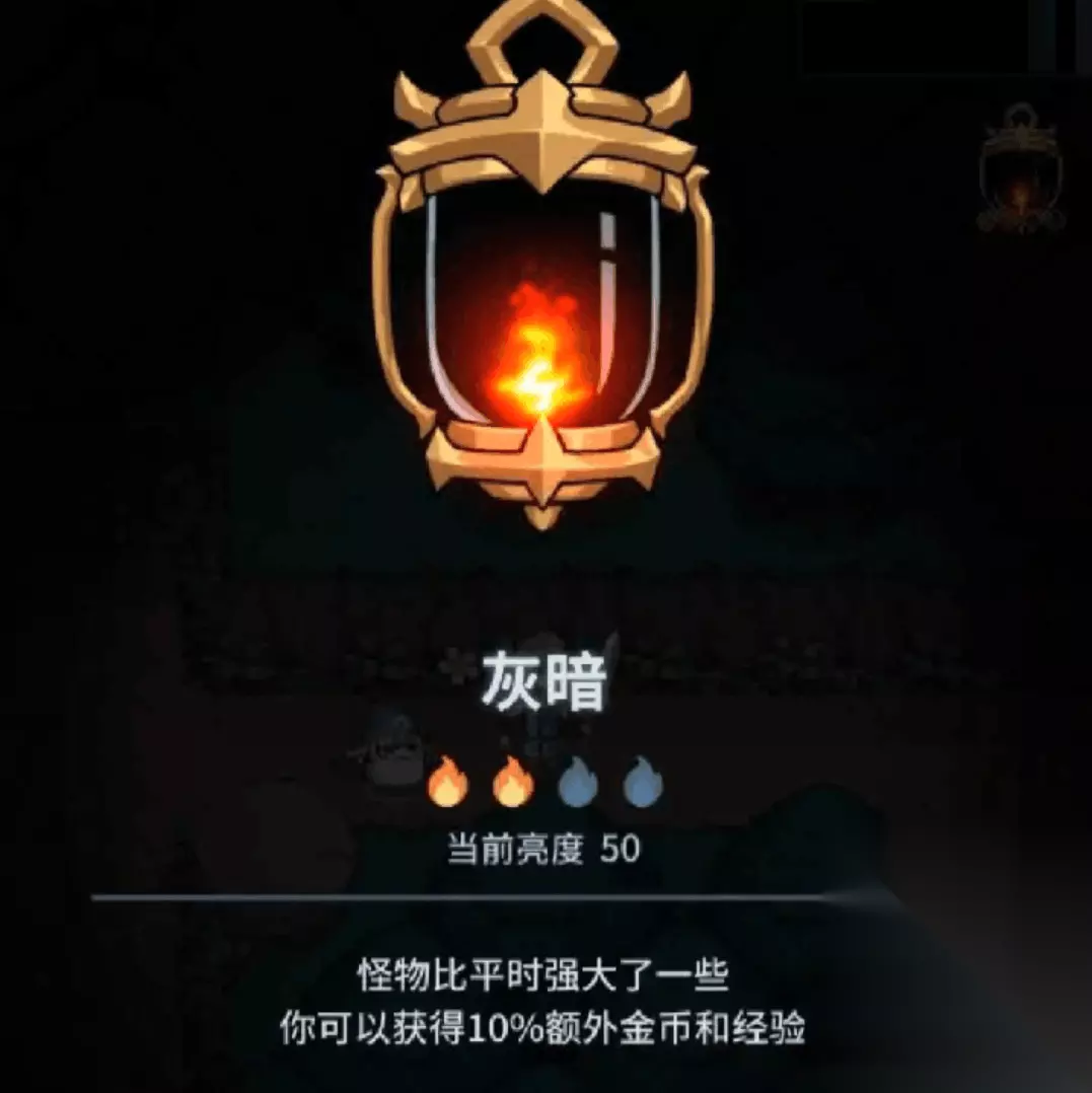 一.提灯亮度介绍。 在提灯与地下城中,提灯一共有四种亮度,分别是昏暗,灰暗,明亮和高亮这四种亮度,其中不同的亮度会影响玩家的收益以及挑战过程中怪物的强度。高亮时怪物的属性会变低,明亮时怪物是正常状态,灰暗时怪物略有加强,但是玩家获得奖励以及经验会增加10%,在昏暗的状态下,怪物会变得非常强大,同时作为回报,玩家获得经验和宠物掉落的概率会增加30%。