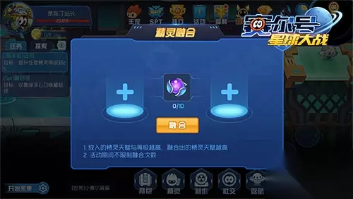 【融合科斯达克和鲁加斯 获得卡鲁克斯】 进入空间连接站后,场景中间会有一个融合精灵的装置。点击装置,弹出如下界面。界面两边分别需要放上精灵卡斯达克和鲁加斯。中间需要放置10个大地之力。在阿尔法星烧掉蜘蛛窝,必定掉落大地之力。一切准备好后,只需要点击融合按钮即可获得卡鲁克斯。不过,需要注意的是,放入融合的精灵等级和天赋越大,融合出的卡鲁克斯天赋就会越高。