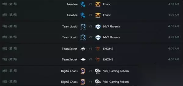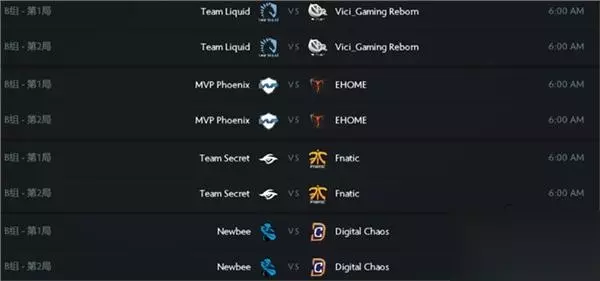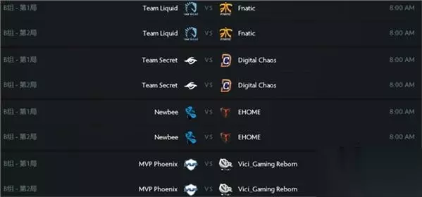 B组赛程 今天B组有三轮比赛,昨天崩盘的VG.R能否找回状态,Newbee和EHOME能否保持目前的优势,我们拭目以待!