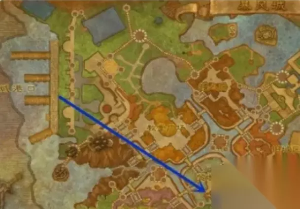 9、联盟来到暴风城74,67坐标,图中蓝色点位置。