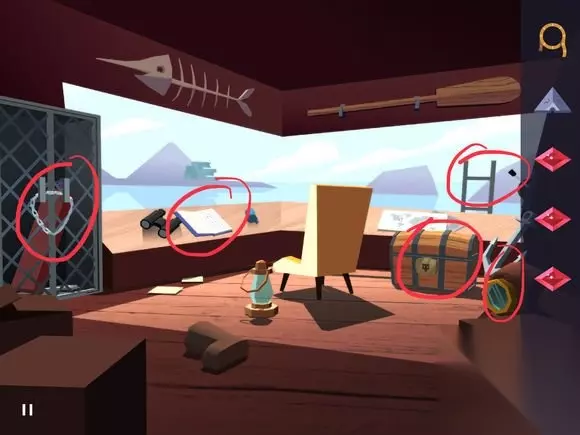 后院的石头,按百叶窗上的顺序调整好,不要动,去大鸟的窝里,找到宝石,回到沙滩。