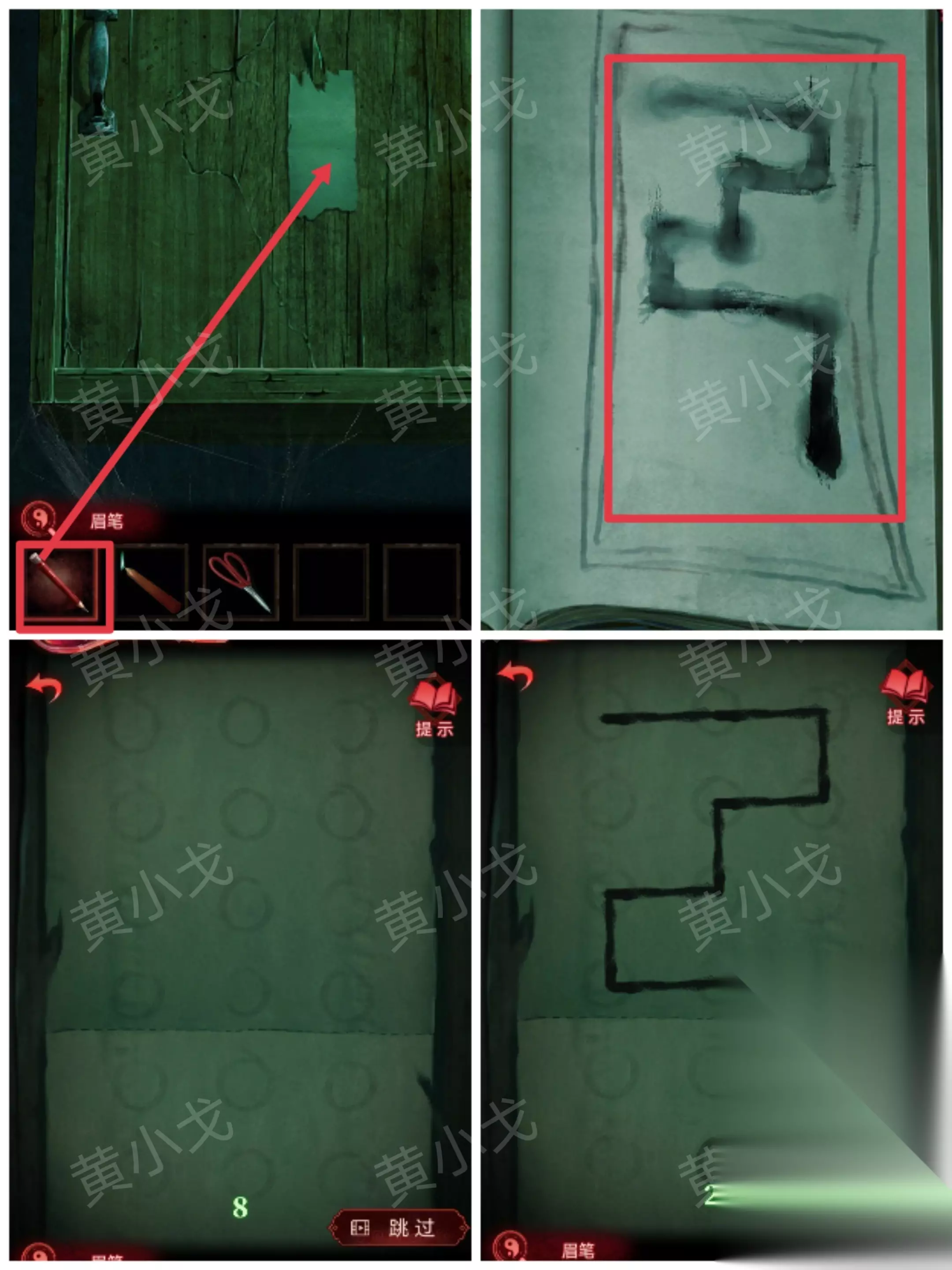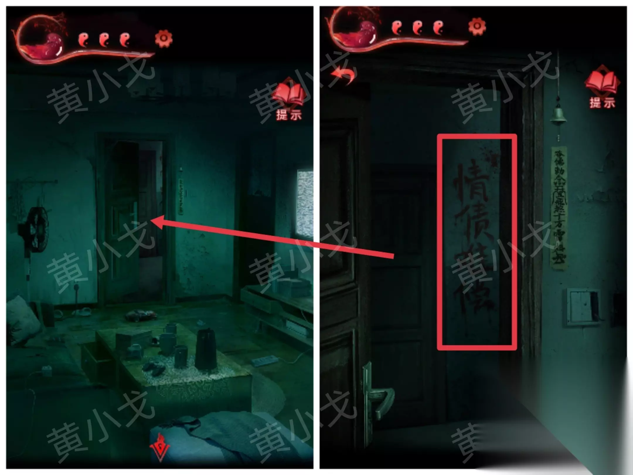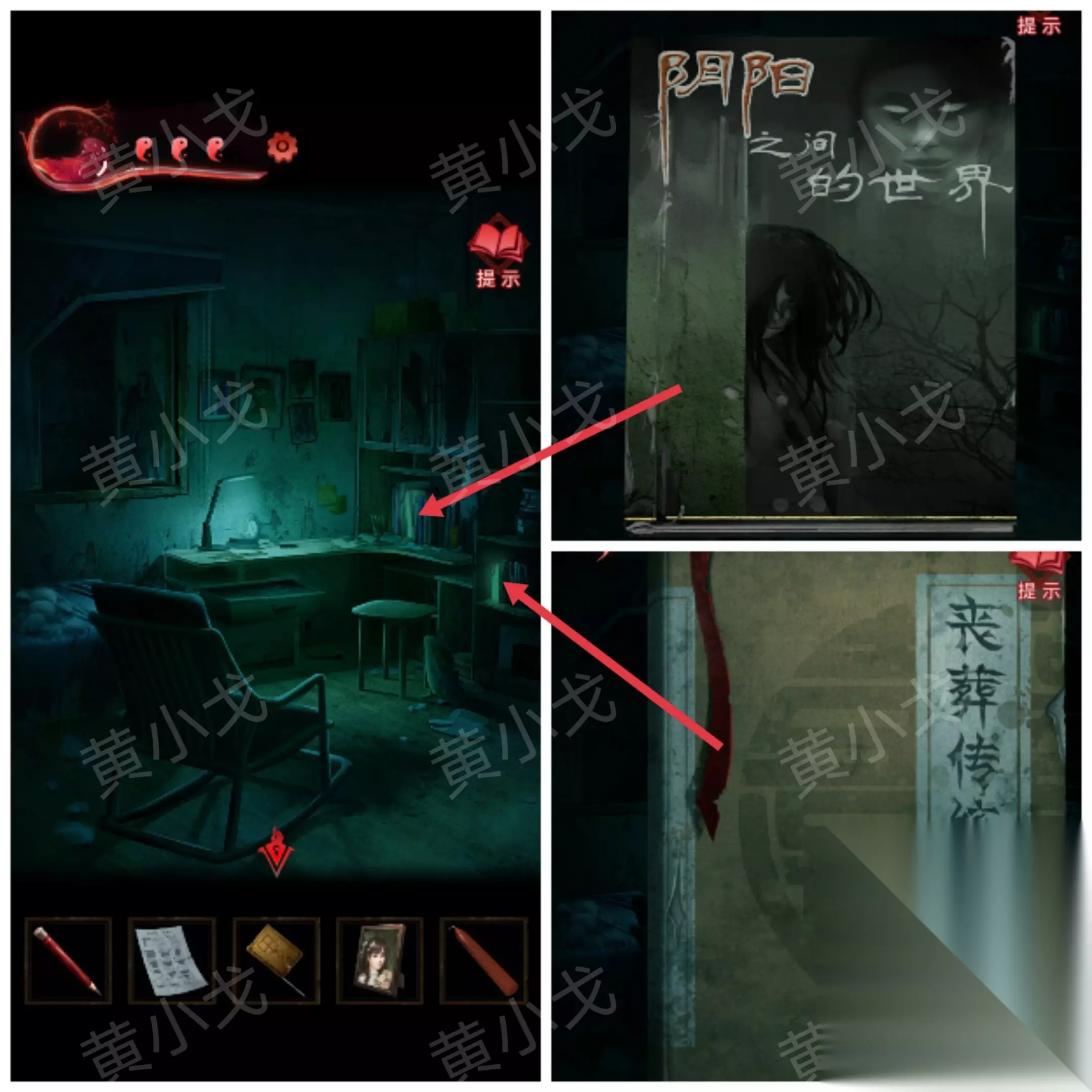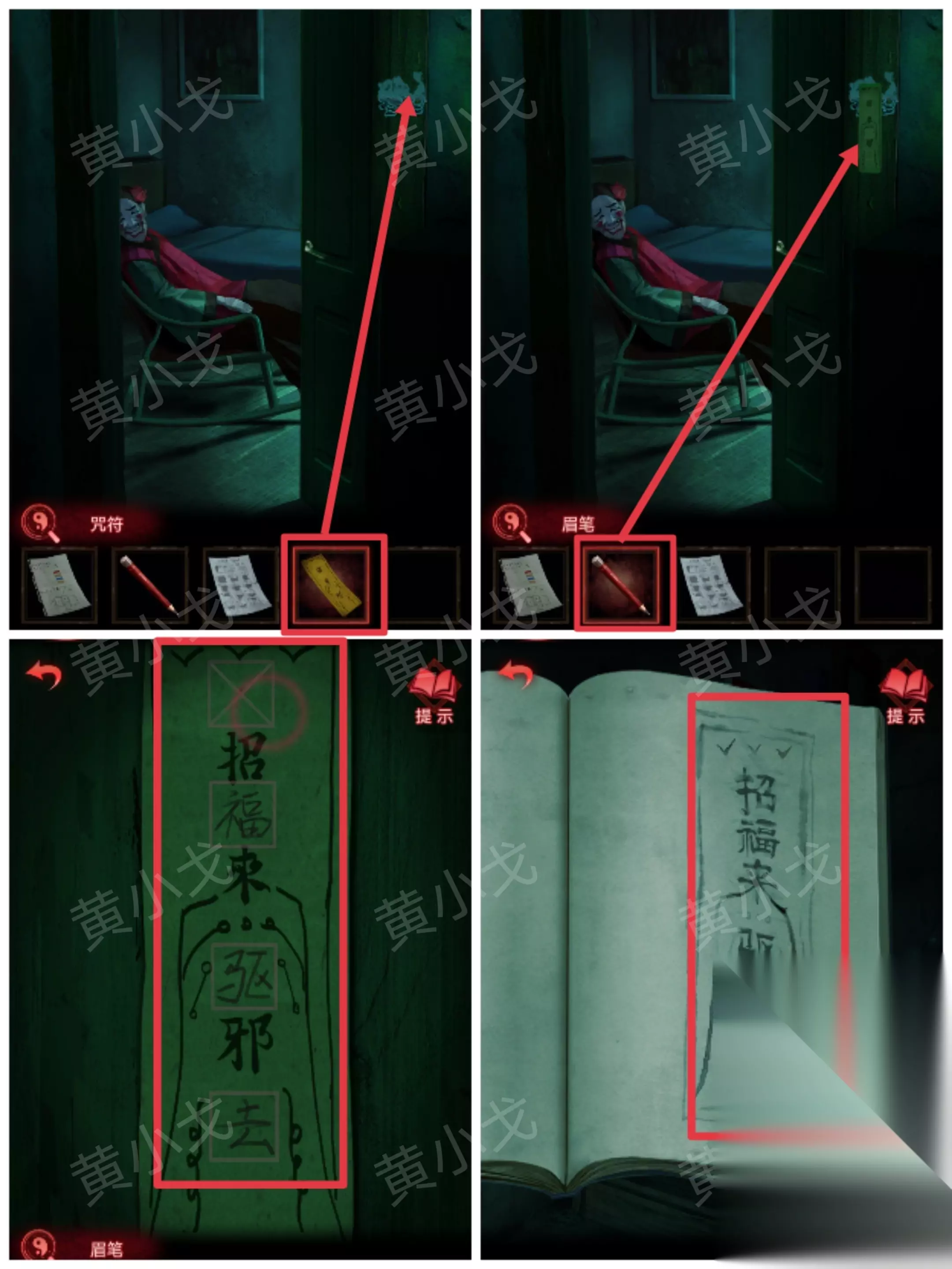 9.贴上【咒符】,根据《谈招阴之物》上的线索,用【眉笔】画符,进入书房 招福来驱邪去