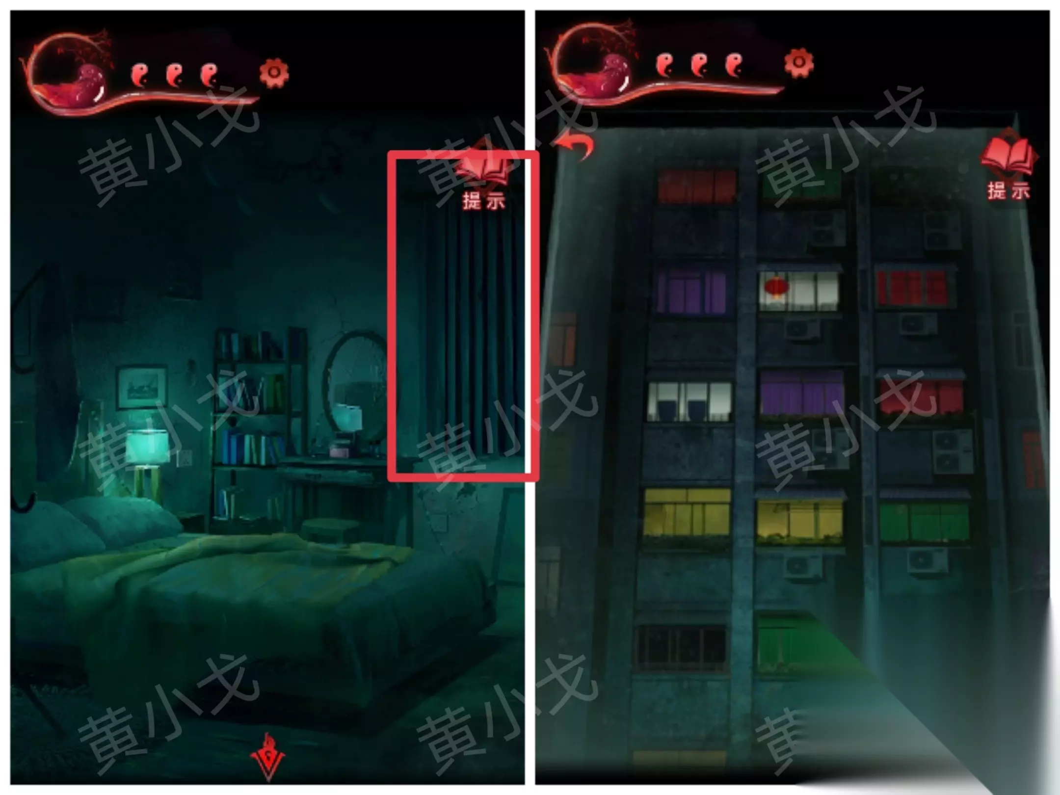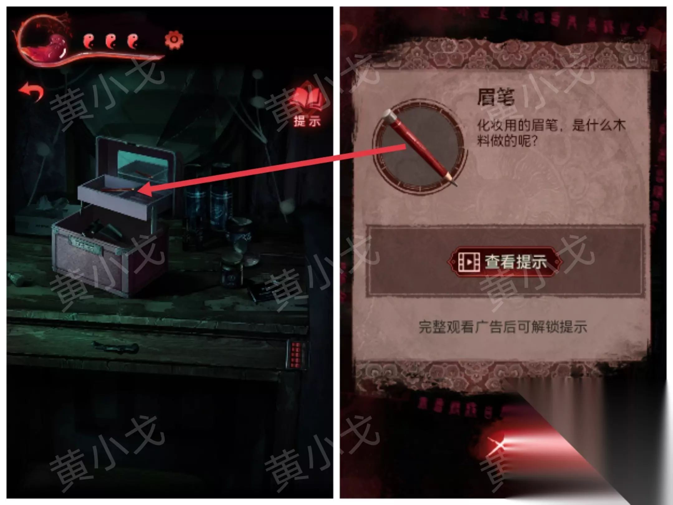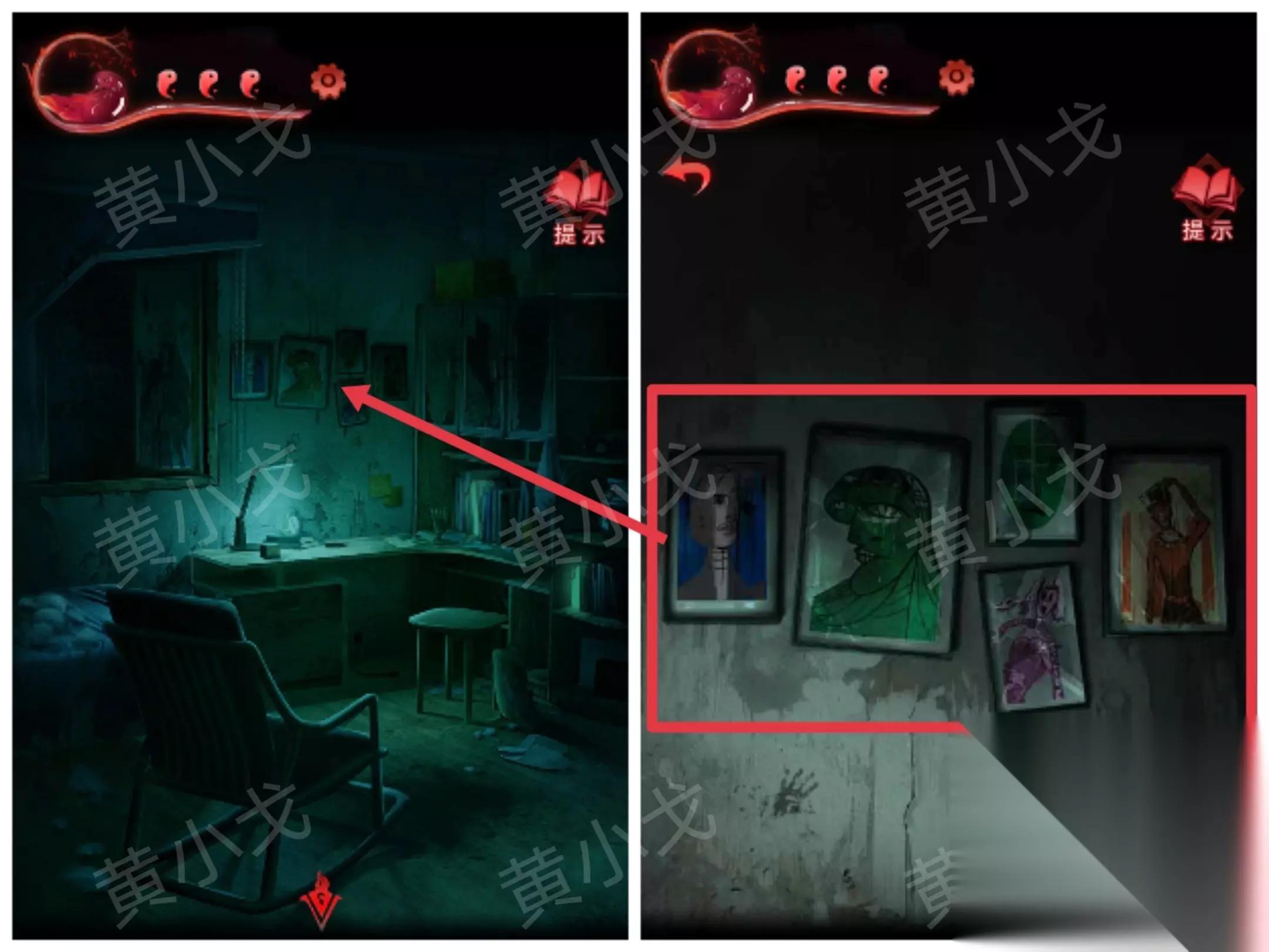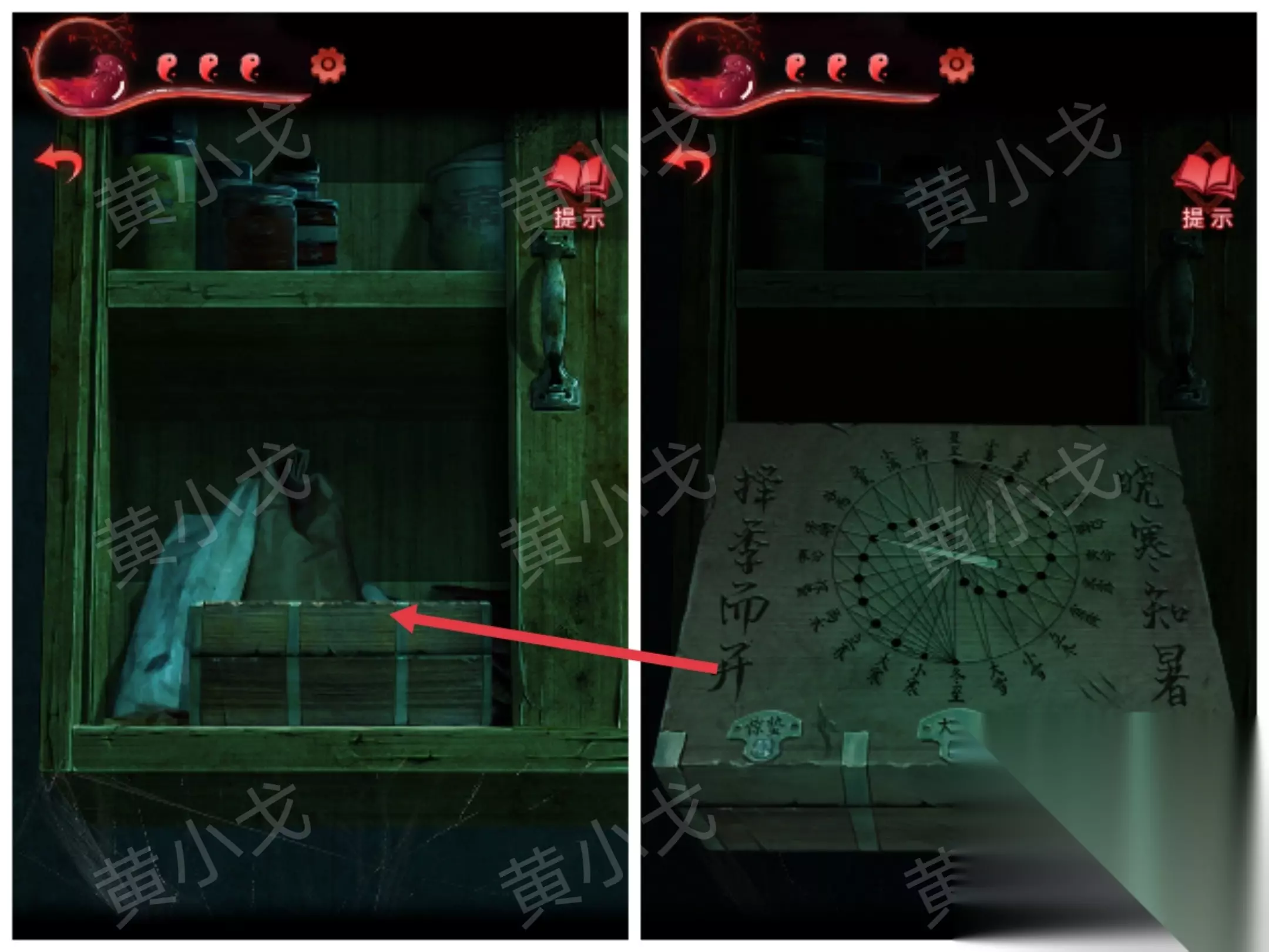 9.贴上【咒符】,根据《谈招阴之物》上的线索,用【眉笔】画符,进入书房 招福来驱邪去