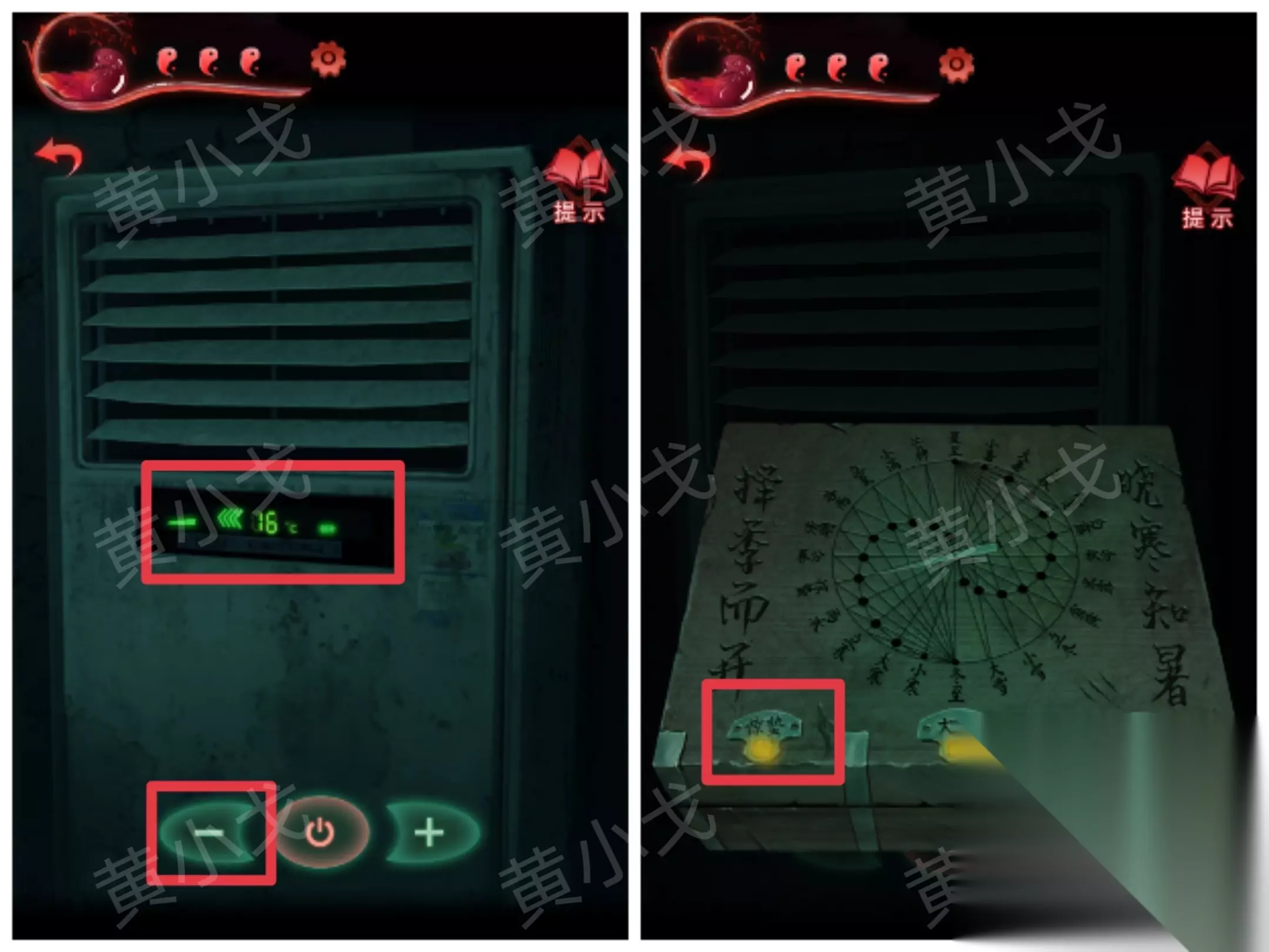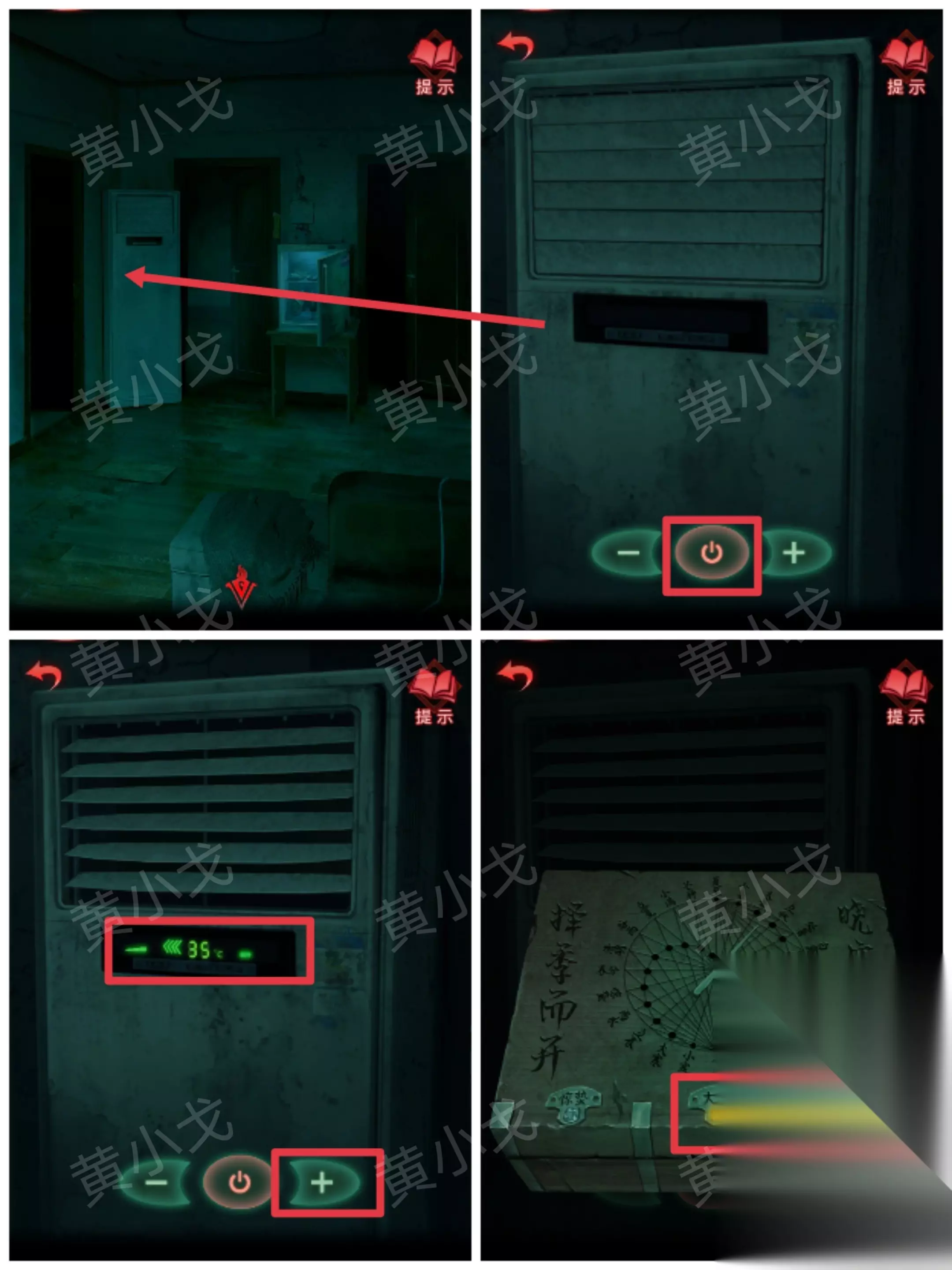 ……✄……✄……✄……✄……✄…… [客厅右] 31.点击空调,打开;根据【二十四节气盒子】盒子上的线索,把温度调到最高;然后拿出【二十四节气盒子】,大暑按钮亮起