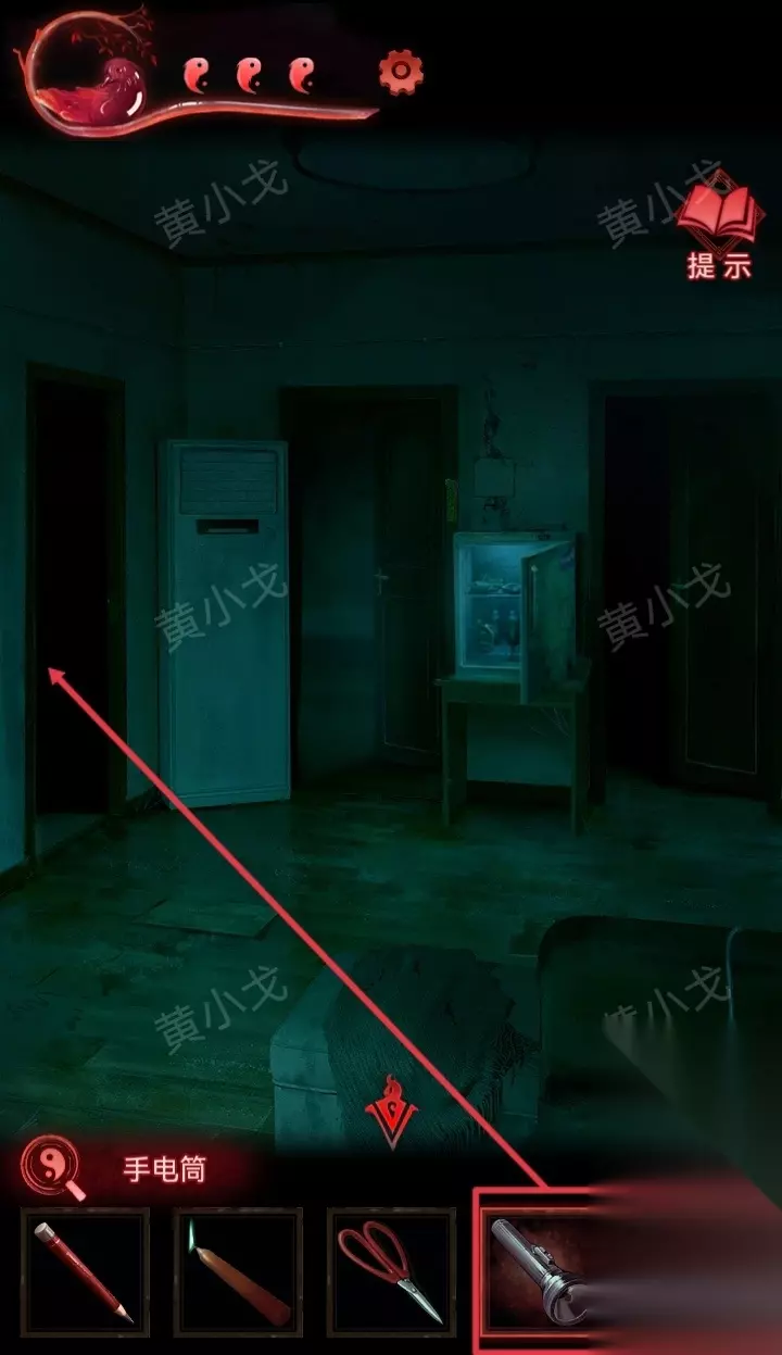 ……✄……✄……✄……✄……✄…… [客厅右] 26.打开【手电筒】,进入卫生间
