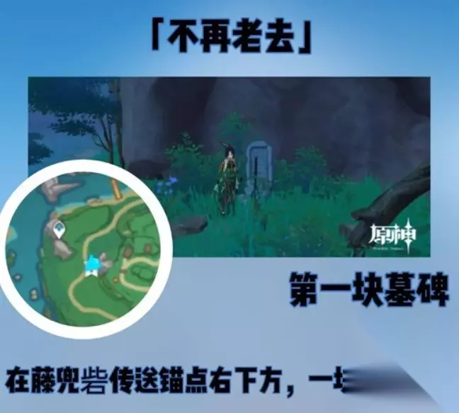 成就详细攻略 ⓵第一块墓碑 在藤兜砦传送锚点右下方,一块蛇骨下面